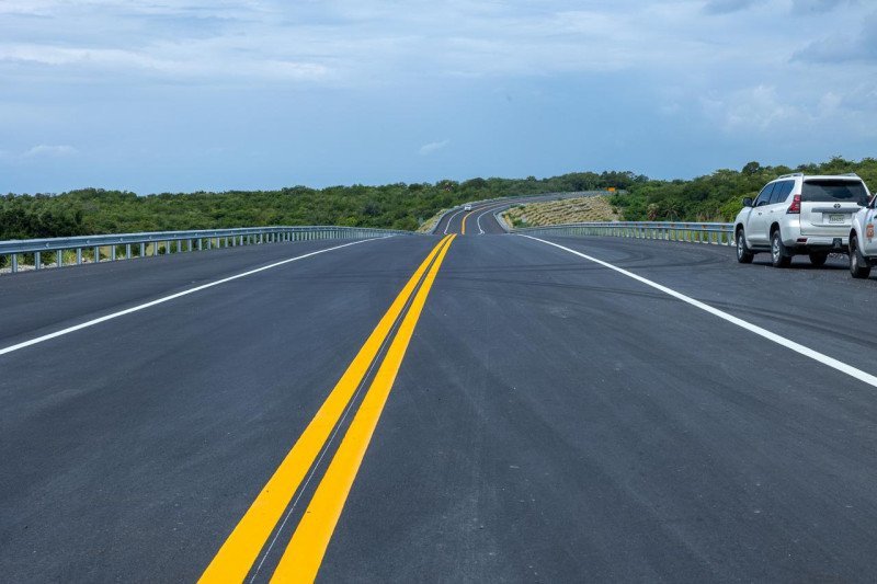 “Lo que sí, estará esta vía, es dotada de una buena señalización, tanto vertical, como horizontal”, dijo. Es bueno que ustedes sepan, argumentó Estrella, que esta es una obra que consta, además de los más de 20 kilómetros, entre la carretera y los ramales, tiene también 17 puentes. O sea, que es una obra de mucha envergadura, como se merece y esperaba esta zona”, afirmó.