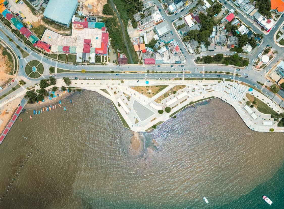 Esta intervención comprende los trabajos de todo el frente marino del municipio de Samaná de 1.3 kilómetros, así como también, el saneamiento de las cañadas que desembocan en el Malecón.